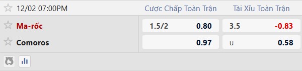 Trong 5 trận đấu gần nhất của Ma Rốc, đã có tổng cộng 9 bàn thắng được ghi (trung bình 1,8 bàn/trận), trong khi con số của Comoros là 17 bàn (trung bình 3,4 bàn/trận). Nhìn vào 3 trận đối đầu gần nhất giữa hai đội, chỉ có tổng cộng 7 bàn thắng được ghi (trung bình 2,3 bàn/trận). Dựa trên số liệu này, khả năng trận đấu có từ 3 bàn thắng trở xuống là rất cao.