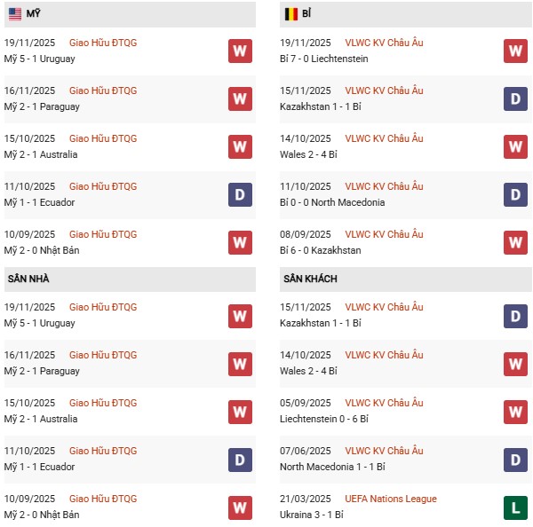 Chẵn bàn thắng: 4/6 trận sân nhà gần nhất của Mỹ có tổng bàn thắng chia hết cho 2. Chưa hết, 7/10 trận vừa qua của Bỉ cũng chứng kiến điều tương tự.