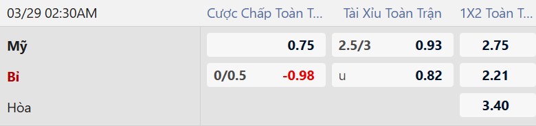 Lựa chọn tốt nhất: Mỹ +1/4 cả trận