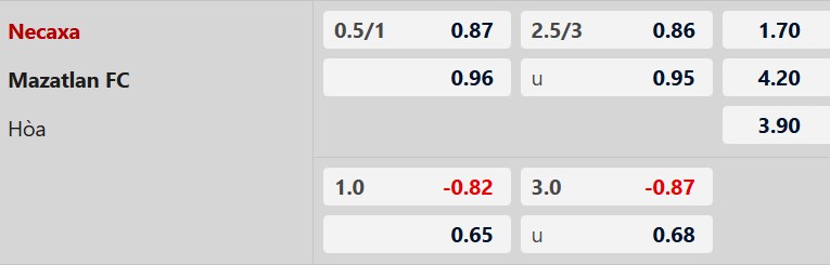 Necaxa chỉ cần thực sự quyết tâm đua Top 8 thì chuyện đánh bại Mazatlan rõ ràng không quá khó. Lưu ý thêm là đội bóng của HLV Martín Varini thắng 4/5 trận sân nhà gần nhất thực sự được đánh giá cao hơn đối thủ (từ -1/4 trở lên).