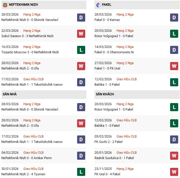 - Neftekhimik thắng 3, hòa 1, thua 4 trong 8 trận gặp Fakel gần đây.