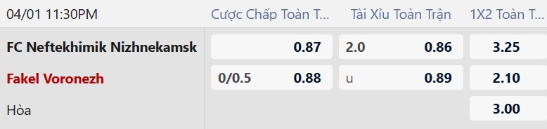 Mốc tài xỉu 2 là mức rất thấp và phản ánh đúng xu hướng của hai đội. Neftekhimik thường chơi chắc chắn trên sân nhà, còn Fakel lại có 2 trận liên tiếp tịt ngòi. Với tính chất quan trọng của cuộc đua thăng hạng, thế trận nhiều khả năng sẽ diễn ra kín kẽ và ít bàn thắng.