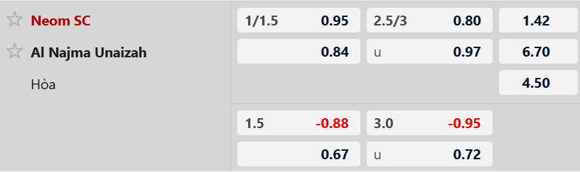 - Neom toàn thắng cả 2 trận đối đầu vừa qua trước Al Najma