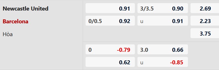 Lẻ bàn thắng: 7/9 trận đấu gần đây của Newcastle kết thúc lẻ bàn thắng. Tình trạng tương tự xảy ra ở 7/8 trận vừa qua của Barca.