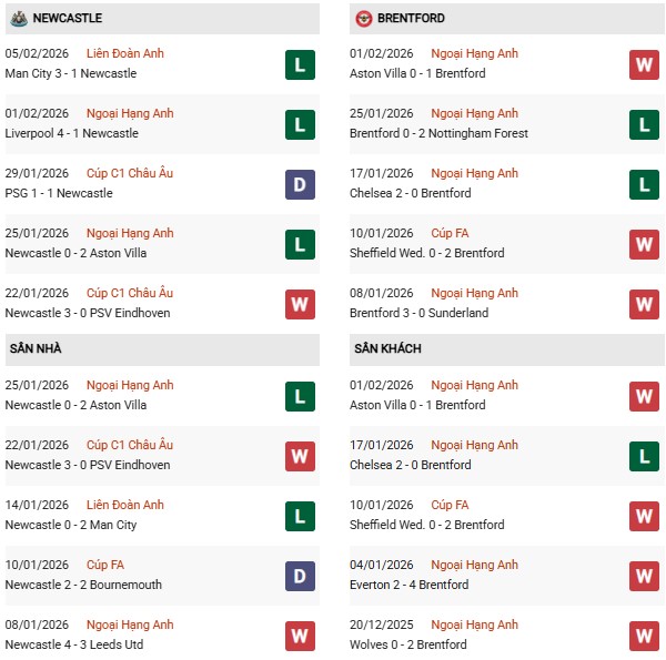 - Trên sân nhà, Newcastle thắng 5, hòa 1 trước Brentford.