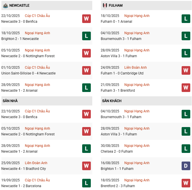 Newcastle hiện đang trải qua giai đoạn không mấy suôn sẻ khi chỉ giành được 9 điểm và đứng thứ 14 trên bảng xếp hạng Premier League, trong khi Fulham bám ngay phía sau với 8 điểm, xếp thứ 15. Sau 8 trận, Newcastle mới có 2 chiến thắng, hòa 3 và thua 3 – con số cho thấy họ vẫn đang loay hoay tìm lại sự cân bằng. Đáng chú ý, cả 2 chiến thắng đều diễn ra tại St James’ Park trước các đối thủ đang nằm trong nhóm cuối bảng: thắng Wolves 1-0 và Nottingham 2-0, trước khi để thua Brighton 1-2 cuối tuần qua.