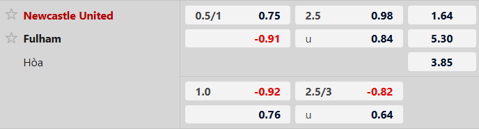 Newcastle được xếp cửa trên với mức chấp 3/4 bàn cả trận. Chích chòe đang thể hiện phong độ ấn tượng khi thắng 3/4 trận gần nhất, và đều là những chiến thắng với cách biệt từ 2 bàn trở lên. Ở chiều ngược lại, Fulham lại cho thấy sự yếu kém trên sân khách khi thua 3/4 trận gần nhất, cũng đều với cách biệt ít nhất 2 bàn. Với tương quan hiện tại, lựa chọn Newcastle ở kèo trên là hướng đầu tư hợp lý.