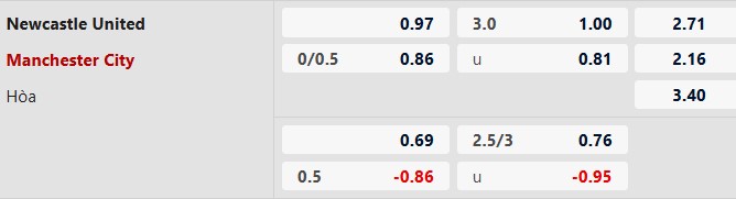 Trong 5 trận đấu gần nhất của Newcastle, đã có tổng cộng 20 bàn thắng được ghi (trung bình 4 bàn/trận), trong khi con số của Man City là 18 bàn (trung bình 3,6 bàn/trận). Nhìn vào 5 trận đối đầu gần nhất giữa hai đội, chỉ có tổng cộng 16 bàn thắng được ghi (trung bình 3,2 bàn/trận). Dựa trên số liệu này, khả năng trận đấu có trên 3 bàn thắng là rất cao.