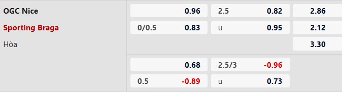 Nice thua theo châu Á: Nice thua cả 6 trận gần nhất theo châu Á, thua 5/7 trận sân nhà gần đây. Trong khi đó, Braga thắng 9, hòa 1, thua 3 ở 13 trận gần đây; thắng 5, hòa 1, thua 1 ở 7 chuyến làm khách vừa qua. Do đó, nhiều khả năng Nice lại tiếp tục thua theo châu Á ở trận này.