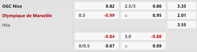 Hai đội cùng ghi bàn: 10/12 trận gần nhất của Nice đều khép lại với ít nhất 1 bàn thắng cho mỗi đội. Hơn nữa, 4/6 chuyến làm khách vừa qua của Marseille cũng khép lại mà không đội nào giữa sạch được lưới nhà. Kịch bản tương tự cũng xảy ra ở 5/7 trận sân nhà gần đây của Nice.