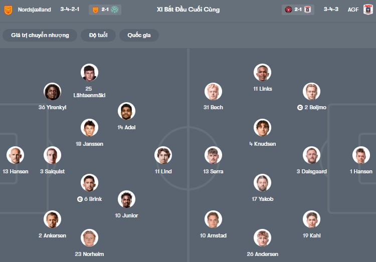 Cả hai đội đều đang sở hữu lối chơi tấn công cởi mở. 3/5 trận gần nhất của Nordsjaelland đều kết thúc với tỷ số 2-1 hoặc 2-0, cho thấy hàng công của họ nổ súng rất đều đặn. Phía bên kia, Aarhus trong nỗ lực bảo vệ ngôi đầu cũng buộc phải chơi tấn công, và thực tế 3/5 trận sân khách gần đây của họ đều có từ 3 bàn trở lên. Mốc tài xỉu 3 bàn là thử thách lớn nhưng với tính chất của một trận cầu then chốt, khả năng hai đội tạo nên một màn rượt đuổi tỷ số là rất cao.