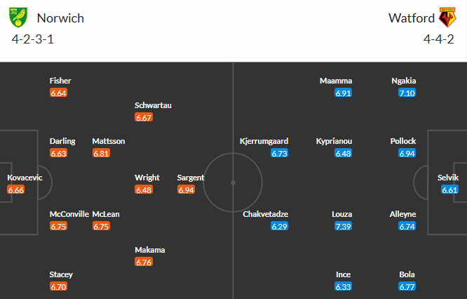 Watford nhỉnh hơn về mặt phong độ và tinh thần thi đấu. Norwich dù có lợi thế sân nhà nhưng khó có thể áp đảo hoàn toàn. Trận đấu nhiều khả năng sẽ xuất hiện bàn thắng từ các tình huống phản công và cố định, với Watford được đánh giá cao hơn về khả năng giành trọn 3 điểm.