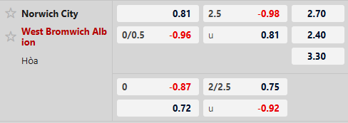Norwich đang có phong độ kèo ấn tượng khi thắng 3/4 trận gần nhất, trong khi West Brom lại gây thất vọng với chỉ 1 lần vượt ải trong 5 trận vừa qua. Đáng chú ý, Norwich còn chiếm ưu thế tuyệt đối về đối đầu khi thắng kèo ở cả 3 lần chạm trán gần nhất với West Brom. Với sự ổn định hiện tại và lợi thế lịch sử, Norwich là lựa chọn sáng nước hơn cho giới đầu tư ở trận đấu này.