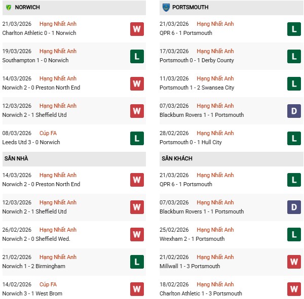 Trận đầu tiên sau FIFA Days tháng 3/2026, Norwich được sải bước trên thánh địa Carrow Road và đón tiếp một Portsmouth đang khủng hoảng phong độ khi giành được đúng 1 điểm duy nhất sau 6 trận gần đây thuộc Championship. Do đó xét về mặt lý thuyết, cơ hội chiến thắng của Norwich là quá rộng mở. Tuy nhiên thực tiễn không phải lúc nào cũng "song hành" với lý thuyết.