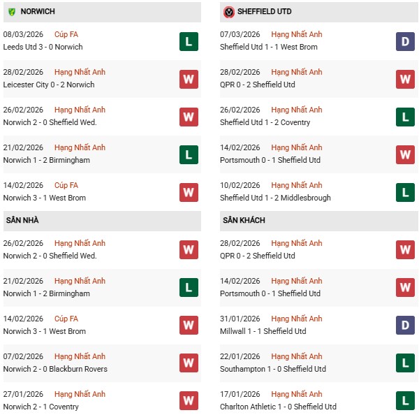 - Trên sân nhà, Norwich thắng 5, thua 3 trước Sheffield United.