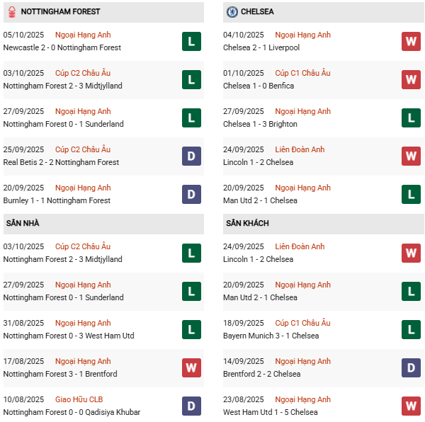 Ngoài ra, trong 8 trận chính thức gần nhất trên sân nhà, Nottingham thua 6, hòa 1 và chỉ thắng 1. Chiến thắng duy nhất ở chuỗi trận này là thắng lợi 3-1 trước Brentford hôm 17/8. Xem ra, Chelsea có nhiều cơ hội giành trọn 3 điểm ở trận này.