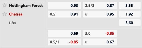 Không đội nào giữ sạch được lưới nhà: 4/6 cuộc đối đầu gần nhất đều khép lại với ít nhất 1 bàn thắng cho mỗi đội. 4/6 trận gần đây của Nottingham và 7/9 trận vừa qua của Chelsea đều kết thúc mà không đội nào giữ sạch lưới nhà. Kịch bản tương tự cũng xảy ra ở 5 chuyến xa nhà vừa qua của Chelsea.