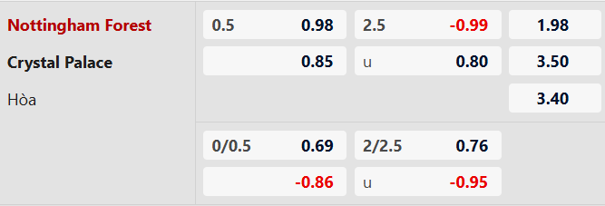 Chẵn bàn thắng: 7/10 trận đối đầu vừa qua giữa Nottingham vs Crystal Palace có tổng bàn thắng chia hết cho 2. Ngoài ra, 5/7 trận mới đây của Nottinhgham và 6/10 trận vừa xong của Crystal Palace cũng chứng kiến điều tương tự.