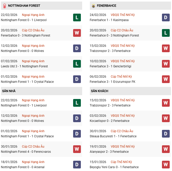 - Fenerbahce đã thất bại 0-3 ở trận lượt đi trước Nottingham.