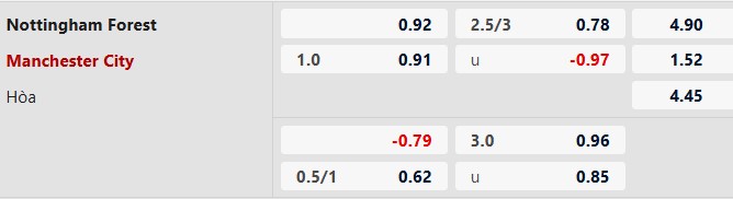 Tổng bàn thắng là số lẻ: 5 trận gần nhất của Nottingham có tổng bàn thắng là số lẻ. 9/11 trận gần nhất của Man City có kịch bản tương tự. Số lần lưới rung trận này sẽ không chia hết cho 2.