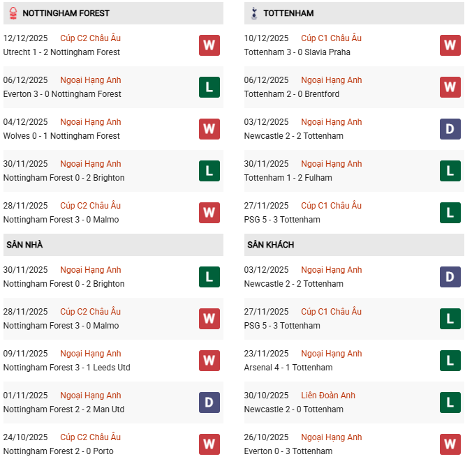 - Trên sân nhà, Nottingham thắng 2, thua 4 trước Tottenham.