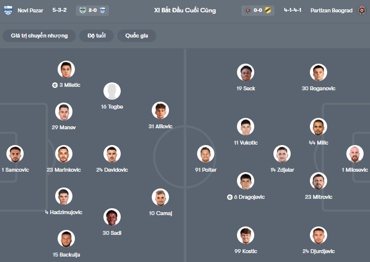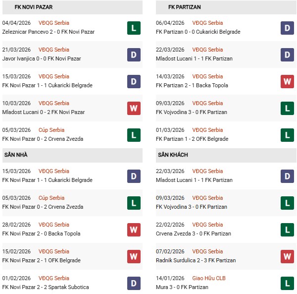 Trong khi đó, FK Partizan cũng không có được trạng thái tốt nhất. Đội khách thắng 1 nhưng thua 2 ở 5 vòng gần nhất, trong đó vừa bị Cukaricki cầm hòa 0-0. Mặt khách, xét rộng hơn trên sân khách, Partizan cũng để thua 3/5 chuyến xa nhà gần đây. Dù vậy, chất lượng đội hình, chiều sâu lực lượng và kinh nghiệm của đội bóng giàu truyền thống này rõ ràng vẫn nhỉnh hơn so với Novi Pazar.