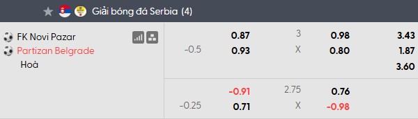 Mức chấp 1/2 bàn cho thấy Partizan vẫn nhận được sự tin tưởng lớn từ giới điều hành. Dù phong độ gần đây chưa thật sự bùng nổ, đội khách vẫn sở hữu đẳng cấp cao hơn hẳn và thường biết cách giành kết quả thuận lợi trước các đối thủ yếu hơn. Novi Pazar có thể gây khó khăn nhờ lợi thế sân nhà, nhưng để đứng vững suốt 90 phút trước sức ép từ Partizan là không đơn giản.