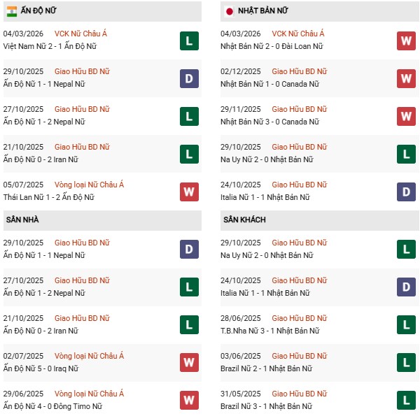 DỰ ĐOÁN: Nữ Ấn Độ 0-3 Nữ Nhật Bản