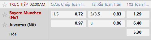 02h00 | Bayern Munich Nữ | VS | Juventus Nữ |