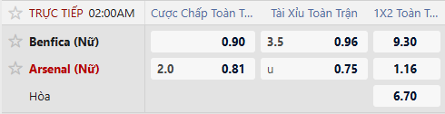 02h00 | Benfica Nữ | VS | Arsenal Nữ |
