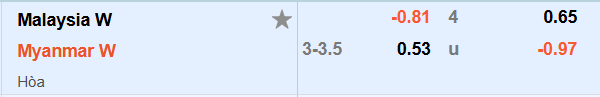 Lựa chọn tốt nhất: Nữ Myanmar -3 1/4 cả trận