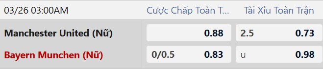 Mốc 2 1/2 bàn là tương đối vừa phải, nhưng thống kê lại nghiêng về khả năng có bàn thắng khi 4/5 trận sân nhà gần nhất của Nữ MU xuất hiện từ 3 bàn trở lên, trong khi Bayern Munich thậm chí có tới 5 trận gần đây nổ tài, ghi trung bình hơn 4 bàn/trận. Với hàng công đang vào phom của đội khách và khả năng phản công của Nữ MU, trận đấu hứa hẹn sẽ có nhiều bàn thắng.