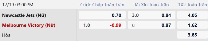 Mức kèo Nữ Melbourne Victory chấp 1 hòa cho thấy đánh giá cao năng lực và sự ổn định của đội đầu bảng. Dù phải làm khách trước một đối thủ đang bám sát trên BXH, Melbourne Victory vẫn sở hữu kinh nghiệm, chiều sâu đội hình và phong độ sân khách ấn tượng. Nữ Newcastle Jets có lợi thế sân nhà nhưng sự thiếu ổn định trong chuỗi trận gần đây khiến khả năng tạo bất ngờ bị đặt dấu hỏi. Với tương quan hiện tại, lựa chọn Nữ Melbourne Victory được xem là hợp lý hơn.