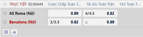 Lựa chọn tốt nhất: Nữ Roma +3 1/4 cả trận