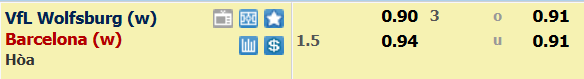 Lựa chọn tốt nhất: Nữ Wolfsburg +1 1/2 cả trận