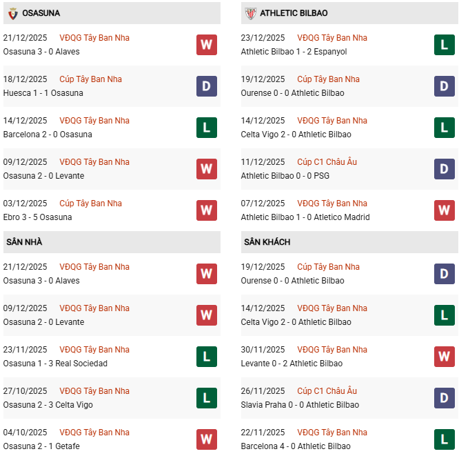 - Trên sân nhà, Osasuna thắng 5, thua 5 trước Athletic Bilbao.