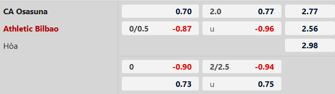 Hai đội cùng ghi bàn: Osasuna thành công trong việc ghi bàn ở 6/7 trận gần nhất còn Bilbao là ở 3/5 trận vừa qua. Bên cạnh đó, Osasuna cũng ghi bàn ở 8 trận chính thức gần nhất trên sân nhà. Với xu hướng như vậy, khả năng cao hai đội sẽ cùng tìm được đường vào khung thành của nhau.