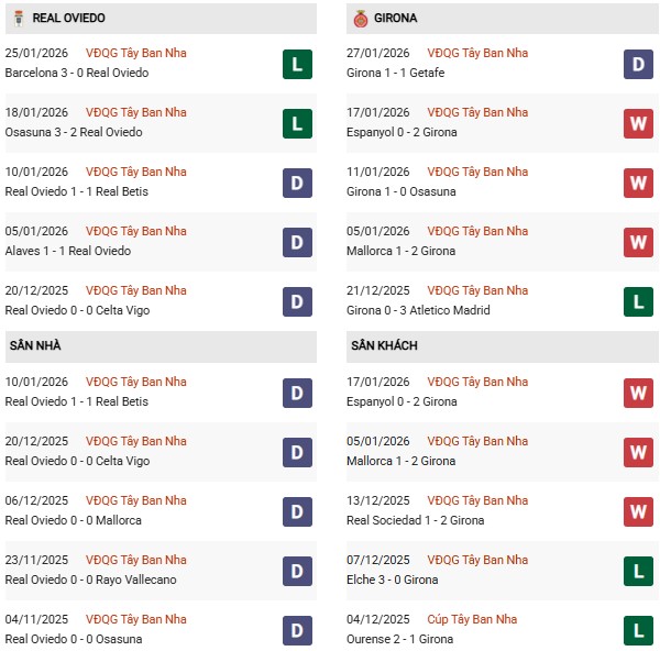 - Trên sân nhà, Oviedo thắng 2, thua 2 trước Girona.