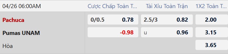 Lựa chọn tốt nhất: Pumas UNAM +1/4 cả trận