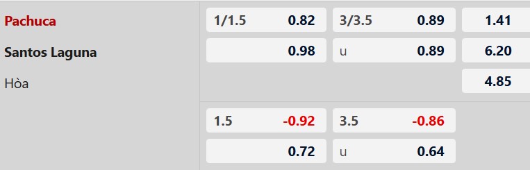 Santos Laguna tuy kết quả thi đấu tệ nhưng điểm đáng khen là đội bóng này ghi bàn khá thường xuyên trên sân khách những tháng gần đây. Chính điều này góp phần làm cho nhiều trận chạm hoặc vượt ngưỡng 3 pha lập công. Kịch bản tưng bừng này còn xuất hiện ở 3/4 trận sân nhà mới đây của Pachuca. Đặc biệt với mức Tài xỉu lên đến 3 1/4 thì khó mà cưỡng lại viễn cảnh 90 phút hấp dẫn.