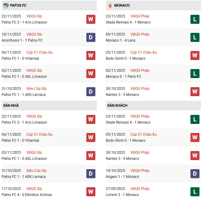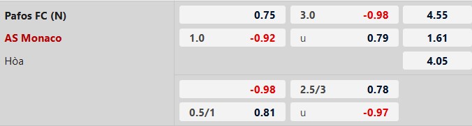 Monaco là đội bóng có thực lực, với nhiều cầu thủ chất lượng hơn hẳn so với đội hình của Pafos. Đội bóng Công quốc cũng đang chơi không tệ ở Champions League trong thời gian gần đây. Cụ thể, họ thắng 1, hòa 2. Nên nhớ rằng, 2 trận hòa của Monaco đều trước các đối thủ mạnh của nước Anh gồm Man City và Tottenham.