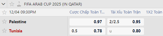1 cuộc chiến Palestine và Tunisia đều tự tin vào việc đánh bại đối thủ. Họ có cơ sở để làm điều đó, tuy nhiên để dự đoán thì khả năng Tunisia sẽ là người có được niềm vui. Khi đó bảng A cúp Ả Rập sẽ diễn ra vô cùng căng thẳng khi có 3 cái tên đủ khả năng đi tiếp vào vòng trong.