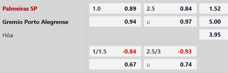 Nhận định kèo tài xỉu Palmeiras vs Gremio: