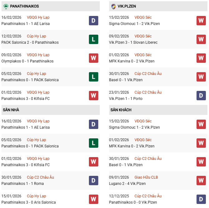 Ở phía bên kia chiến tuyến, Viktoria Plzen đang cho thấy một bộ mặt hoàn toàn trái ngược với sự thăng hoa rực rỡ. Đội bóng đến từ CH Séc hiện đứng thứ 4 tại giải quốc nội với 41 điểm và sở hữu chuỗi phong độ cực kỳ ấn tượng: thắng 4 và hòa 1 trong 5 trận gần nhất trên mọi đấu trường. Đặc biệt, bản lĩnh sân khách của thầy trò HLV Martin Hyský là điều không thể xem thường. Viktoria Plzen đang sở hữu chuỗi 4 trận thắng liên tiếp khi phải thi đấu xa nhà, ghi bàn đều đặn và duy trì được sự tập trung cao độ ở hàng phòng ngự. Sự tự tin của các cầu thủ Plzen đang ở mức cao nhất, giúp họ sẵn sàng đối mặt với sức ép từ khán đài Hy Lạp.