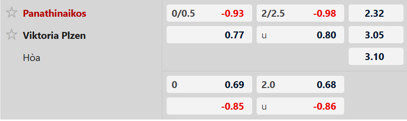 DỰ ĐOÁN: Panathinaikos 0-1 Viktoria Plzen