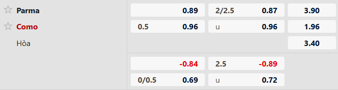 Dù Parma có lợi thế sân nhà, nhưng phong độ chói sáng của Como khiến họ được xếp ở cửa trên với mức chấp 1/2 bàn. Với việc Como đang có chuỗi trận bất bại ấn tượng và Parma sở hữu hàng công yếu kém nhất giải đấu (chỉ 3 bàn), mức chấp này cho thấy sự nghi ngờ lớn vào đội chủ nhà. Como có hàng thủ chắc chắn hơn và đang tràn đầy sự tự tin sau những chiến thắng gần đây. Chọn Como.