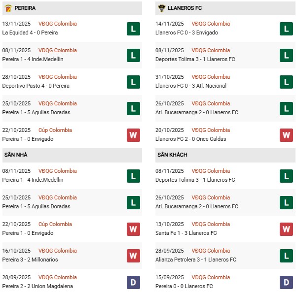 Llaneros khép lại mùa giải trước ở vị trí thứ 15. Phong độ hiện tại của đội khách cũng không khá hơn Pereira là bao, khi trong 10 trận gần nhất họ chỉ thắng 2, hòa 1 và thua 7 trận. Những con số này phản ánh rõ sự thiếu ổn định và bản lĩnh, đặc biệt là khi phải thi đấu xa nhà.