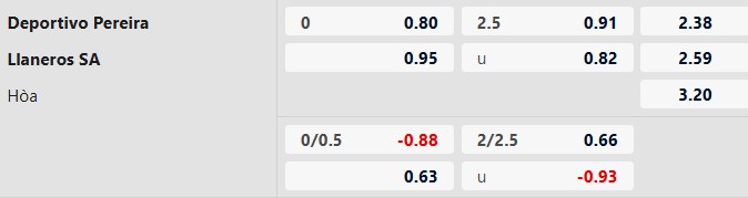 Kèo châu Á được niêm yết ở mức 0:0 cho thấy giới chuyên gia đánh giá hai đội khá cân bằng. Dẫu vậy, với lợi thế sân nhà cùng thành tích tiếp đón Llaneros tương đối tốt trong quá khứ, Pereira vẫn là lựa chọn đáng tin cậy hơn ở kèo đồng banh.