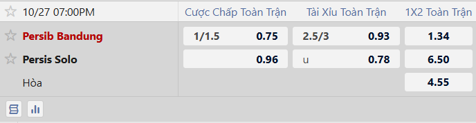 Persib Bandung đang được đánh giá rất cao trận này với kèo chấp 1 1/4 bàn. Cần nhấn mạnh rằng 4/5 trận gần nhất từ đấu trường quốc nội đến châu lục, Persib Bandung đều làm giới đầu tư hài lòng khi thắng kèo. Trong khi đó, 5 trận gần đây Persis Solo không vượt ải Handicap. Do đó có thể chủ nhà vẫn là chọn lựa uy tín.