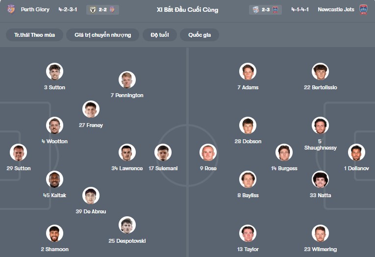 Nếu như Newcastle Jets dẫn đầu bảng xếp hạng giải VĐQG Australia, thì đối thủ của họ đang vật lộn trụ hạng. Cụ thể, Perth Glory đang xếp ở vị trí thứ 4 từ dưới lên. Sau 16 vòng đấu, họ mới giành được 6 chiến thắng.